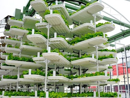 با این حال برخی پژوهشگران بر این باورند که نیازی به استفاده از نور مصنوعی نیست و میتوان ساختار این مزارع را به گونهای طراحی کرد که از نور خورشید استفاده کند. برای این منظور احتمالا باید سکوهایی که سینیهای پرورش گیاه روی آن قرار دارد به صورت متناوب در معرض نور خورشید قرار بگیرد تا همه گیاهان به یک میزان از نور خورشید استفاده کنند. یکی از نکات جالب در مورد کشاورزی عمودی این است که این محصولات کاملا پاک هستند و به دلیل استفاده نکردن از خاک یا سموم مختلف حتی نیازی به شستوشو قبل از خوردن هم ندارند. هم اکنون محصولات شرکت «نیووج» در بسیاری از فروشگاههای زنجیرهای بزرگ ژاپن به فروش میرسد.